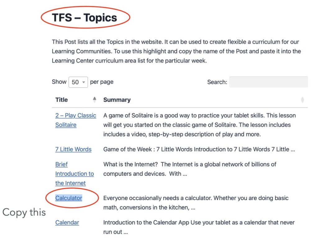 To begin the process run the Topics query in the TFS – Topics post. This query lists the topics available and the title of the topic can be copied and pasted into the lesson plan to add or replace a lesson.
