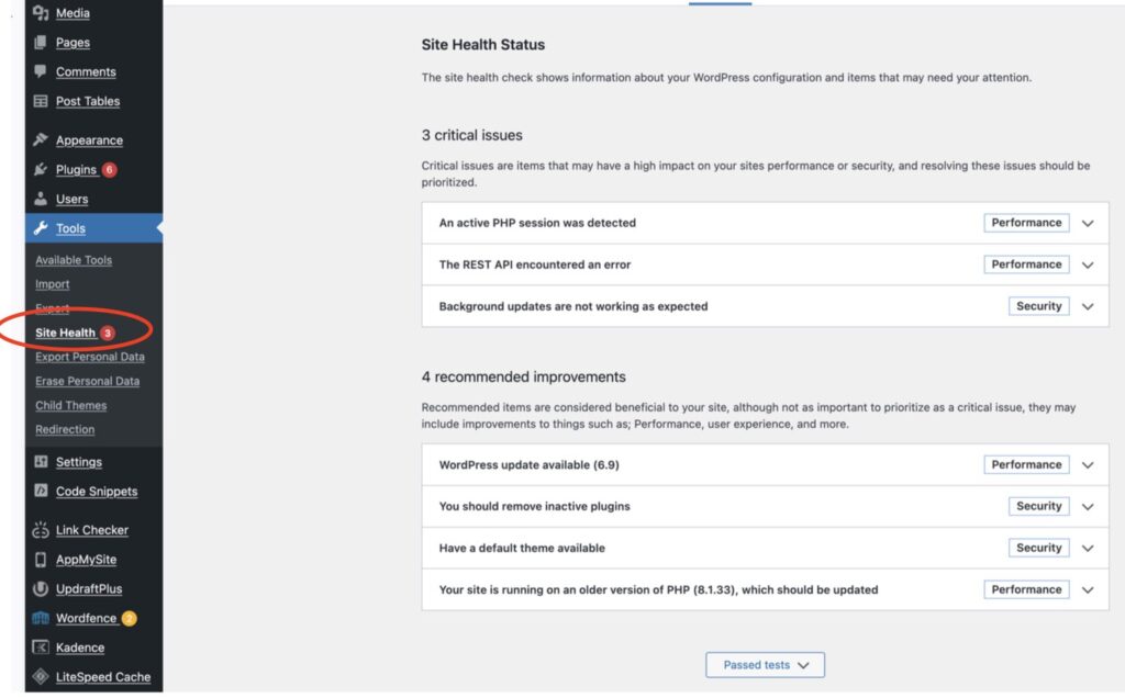 Check the health of the WordPress website – here we are testing the staging environment. We found here that after setting up a session for our session variable caused an issue since we where not logging out and closing the session. We commented the Session Variable section of the functions.php file to remove this issue.