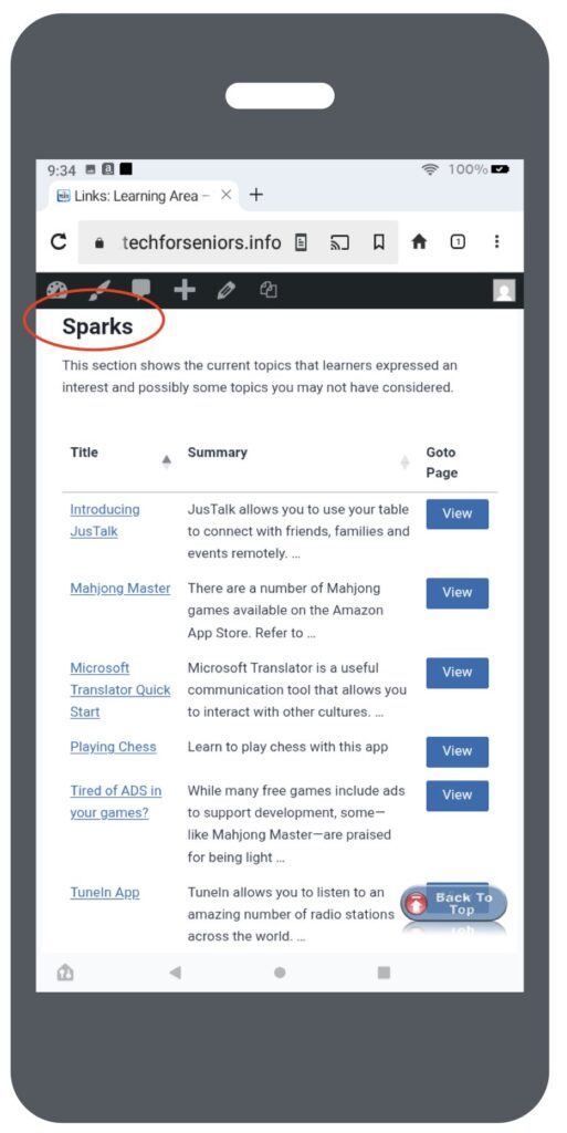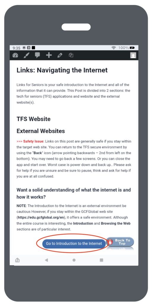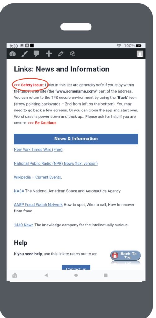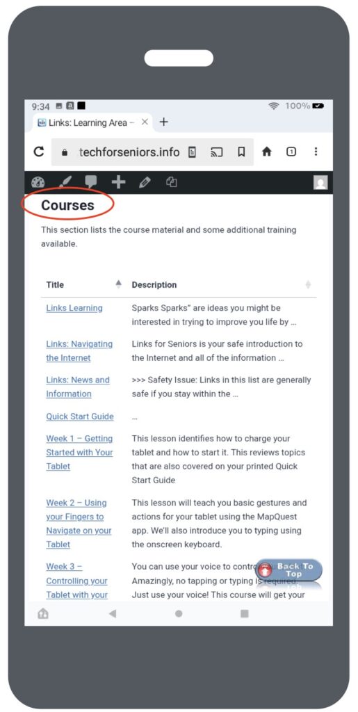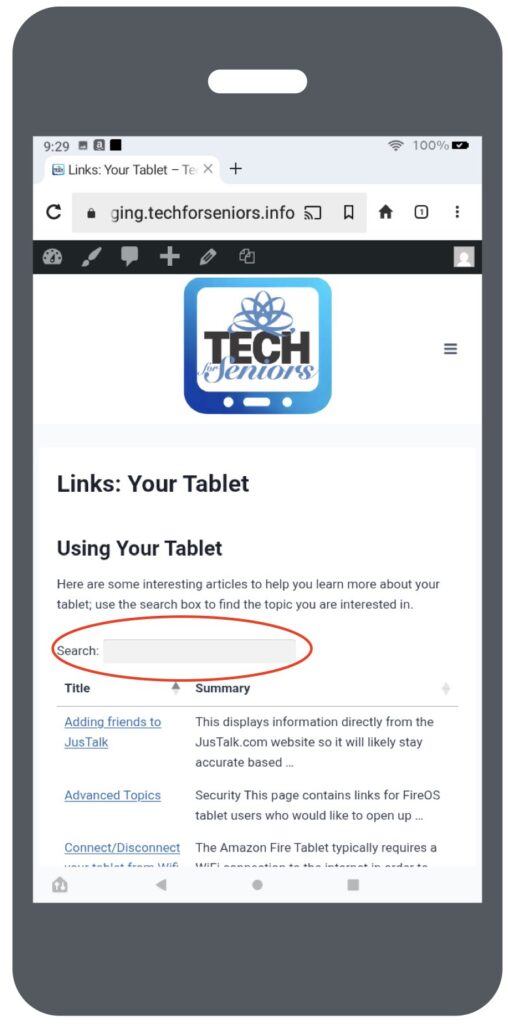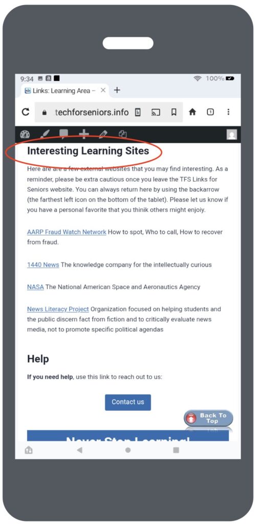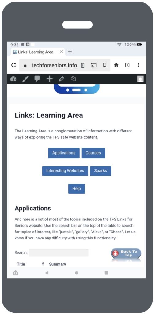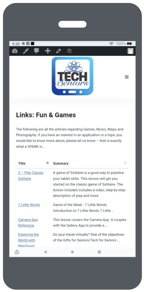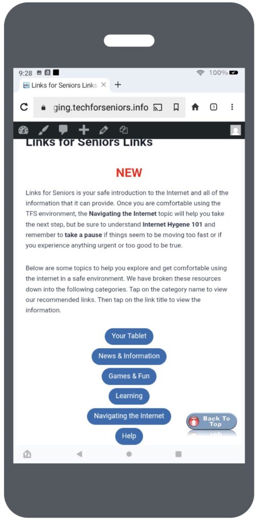 Links for Seniors provides a safe internet environment to access material relevant to using the Gifts for Seniors/Tech for Seniors tablets.
